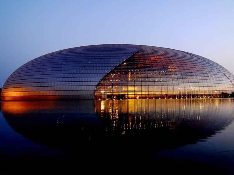 國(guó)家大劇院位于北京市心臟地帶,主體建筑為獨(dú)特的殼體造型,體現(xiàn)了人與自然和諧共融的理念。