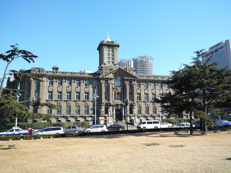 英藍(lán)國(guó)際金融中心,建筑面積約12萬(wàn)平方米,臨街主立面、寬52米,(地上19層,地下4層)。立面劃分運(yùn)用西方古典三段式的比例關(guān)系,從下自上層層錯(cuò)臺(tái)處理,形成七級(jí)分段。設(shè)計(jì)元素借鑒哥特式風(fēng)格,強(qiáng)調(diào)豎向構(gòu)件,采用中國(guó)古錢(qián)幣外圓內(nèi)方的抽象符號(hào)作為大廈裝飾的設(shè)計(jì)元素,將其貫穿于樓前廣場(chǎng)入口處、大堂地面、電梯廳、轎廂及中庭。